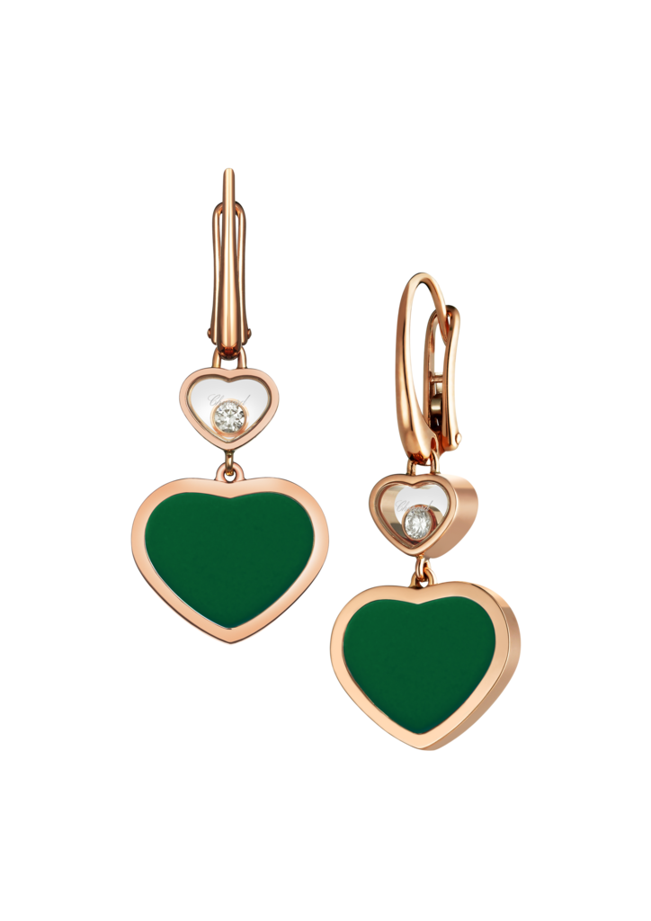 EARRINGS, ETHICAL ROSE GOLD, DIAMONDS, GREEN AGATE