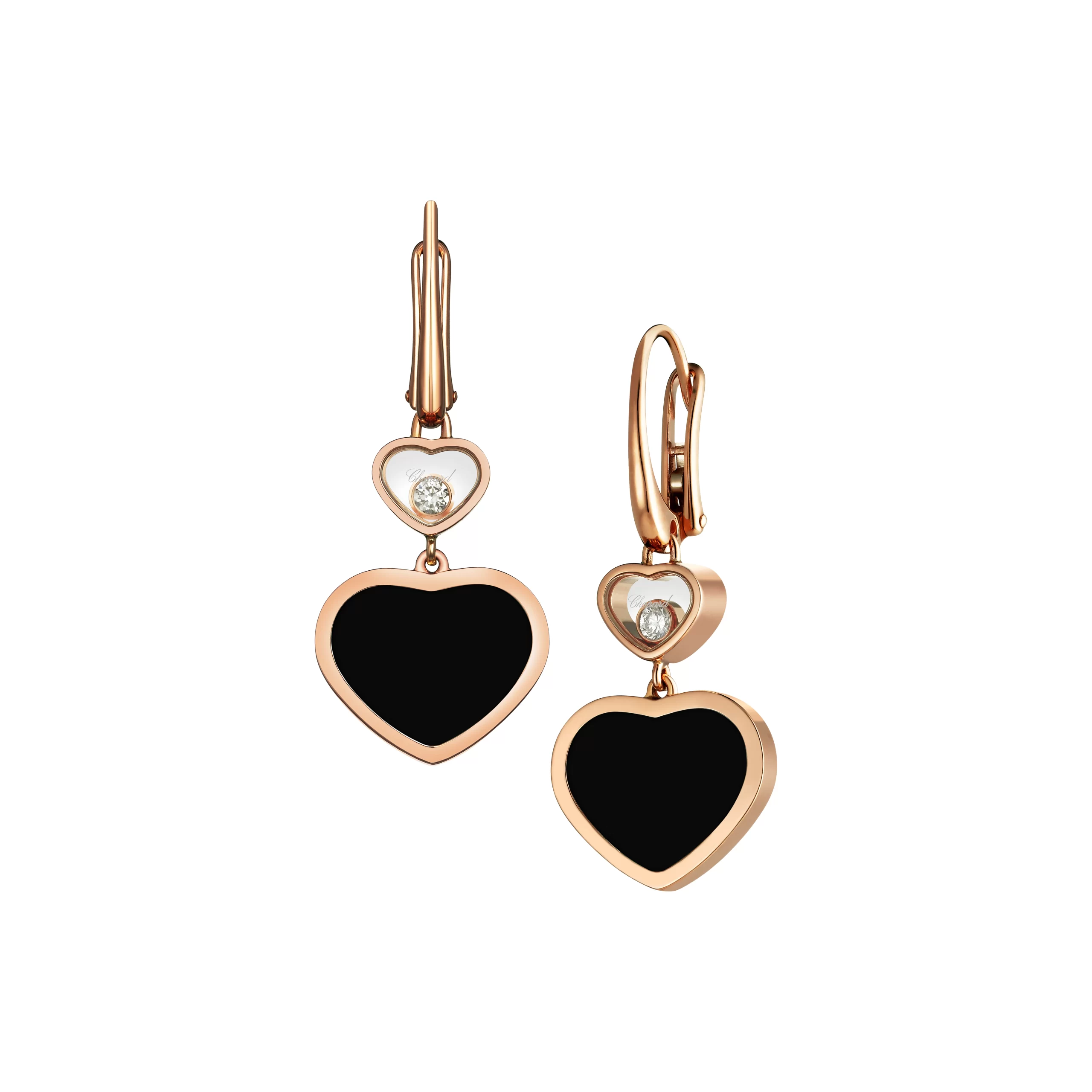 EARRINGS, ETHICAL ROSE GOLD, DIAMONDS, ONYX