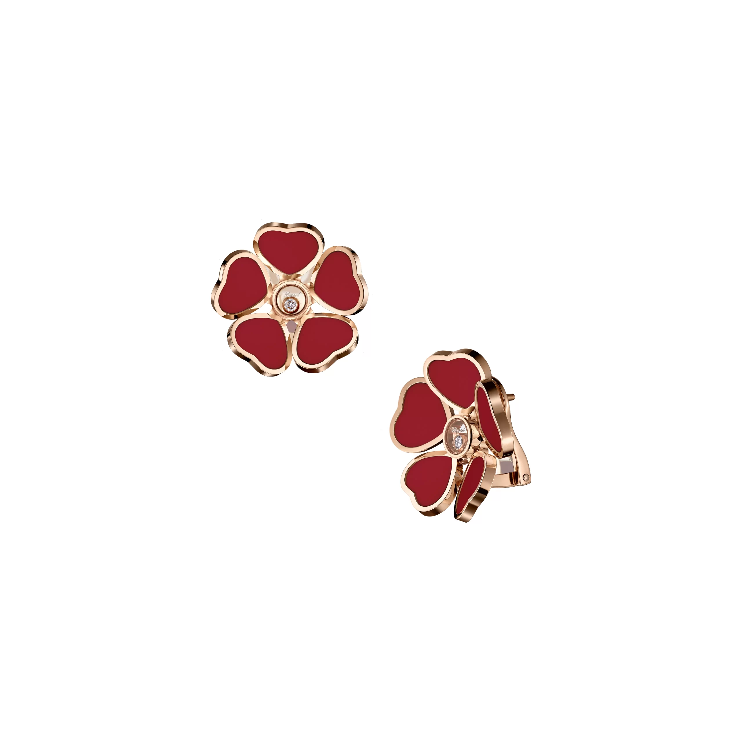 EARRINGS, ETHICAL ROSE GOLD, DIAMONDS, RED STONE