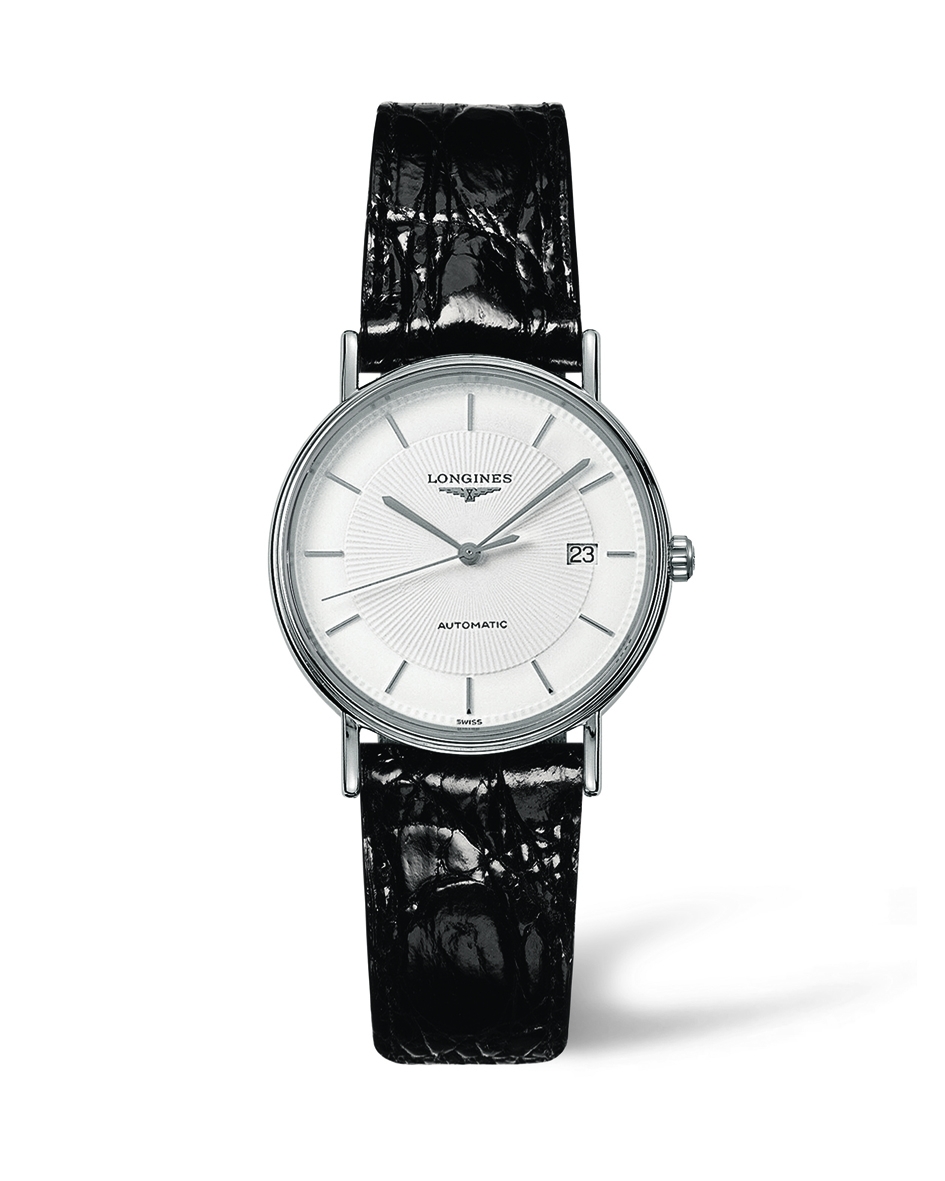 Movement: Automatic Dimension: 34 mm Case: Stainless steel Strap: Black Leather Water resistance: 3 ATM