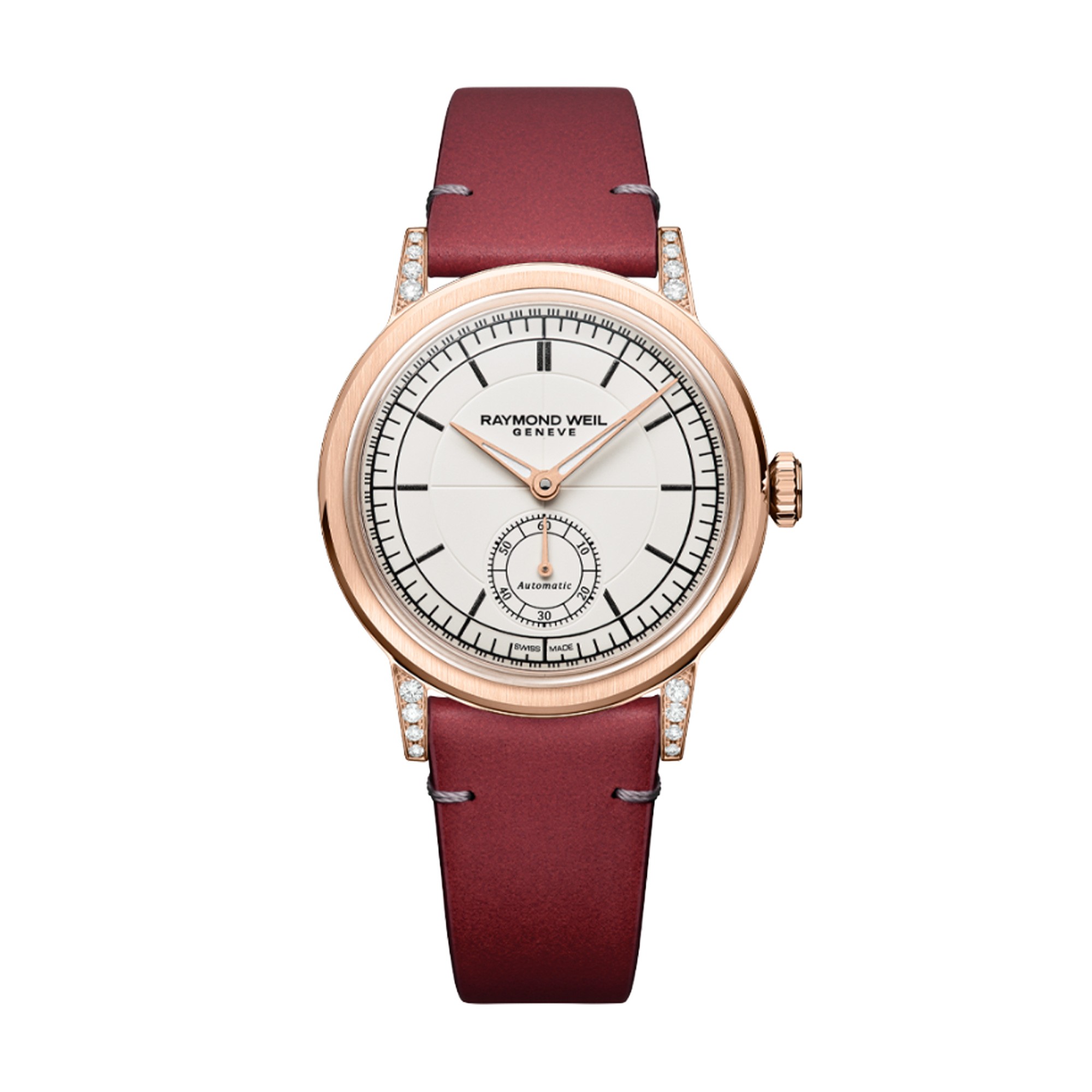 “””Movement: Automatic Dimension: 35 mm Case: Stainless Steel with Rose gold PVD plating Strap: Red grape Leather Water resistance: 5 ATM