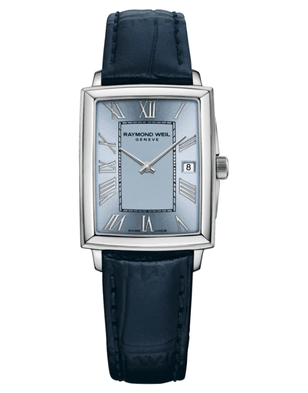 “””Movement: Quartz Dimension: 22.6 x 28.1 mm Case: Stainlesss Steel Strap: Blue Leather Water resistance: 5 ATM